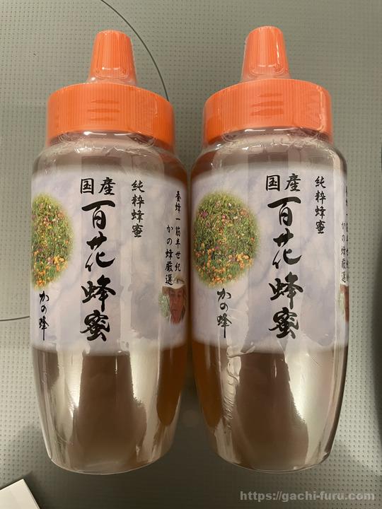 福岡県八女市から、「かの蜂の国産純粋蜂蜜 百花蜂蜜」が届いたので紹介する。正式名称は「かの蜂 国産 百花蜂蜜 1kg(とんがり容器500g×2本)養蜂一筋60年自慢の一品」で、寄付額は10,000円であった。すでにタイトルからあふれ出る自信が感じられる(笑)。
