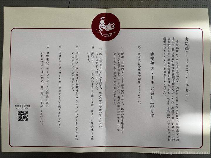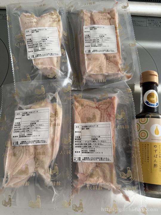 この「古処鶏」は、水炊きセットの記事も最近書かせてもらった↓が、今回の鶏胸肉ステーキも、同タイミングで頼んでいたものである。