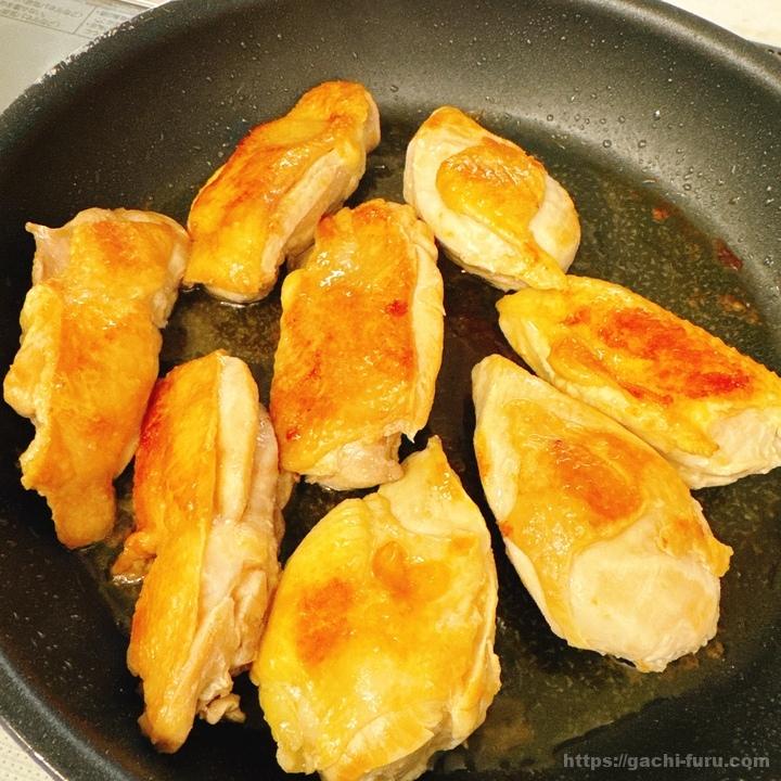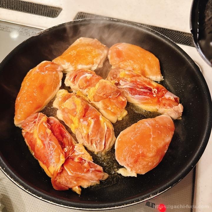 なじませたら、焼く。皮から焼き始めるのが王道。すでにジュージューといい音と匂いがする。