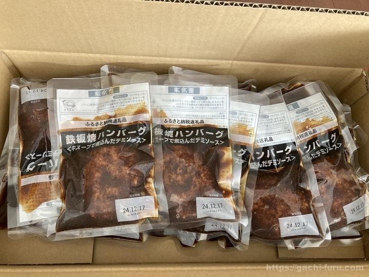 福岡県飯塚市から「鉄板焼きハンバーグ(デミソース)20個セット」が届いた。