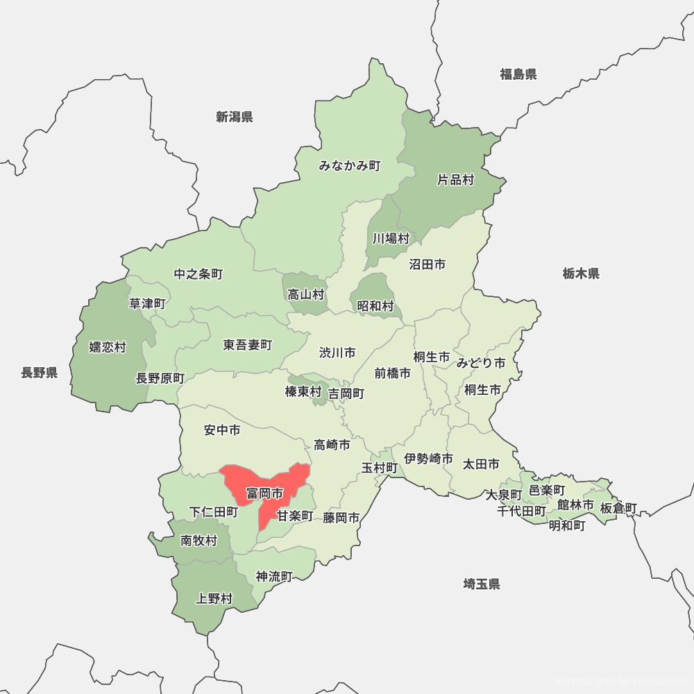 ちなみに、富岡市というのはこちら。おじさんが住む神戸からはだいぶ遠いので、群馬県は全然土地勘が分からない。大学時代に前橋高校と高崎高校の出身者がいて、ローカルな争いをしていたことだけなんとなく覚えているが・・・