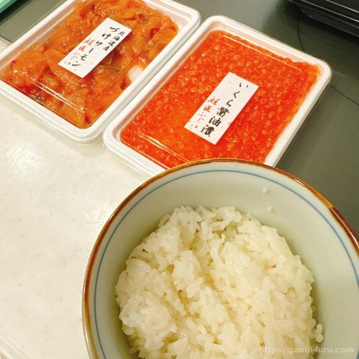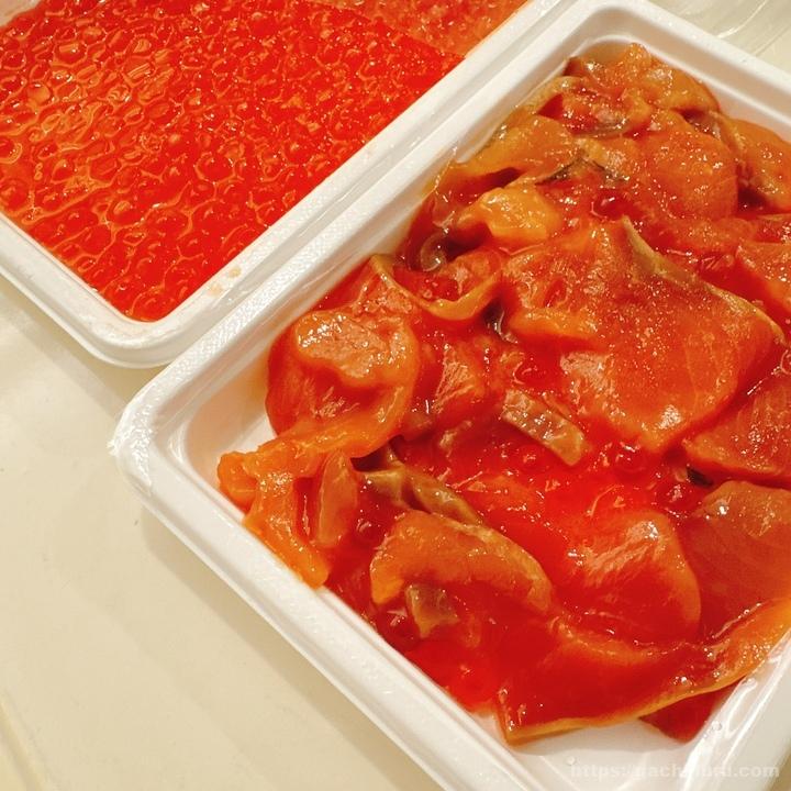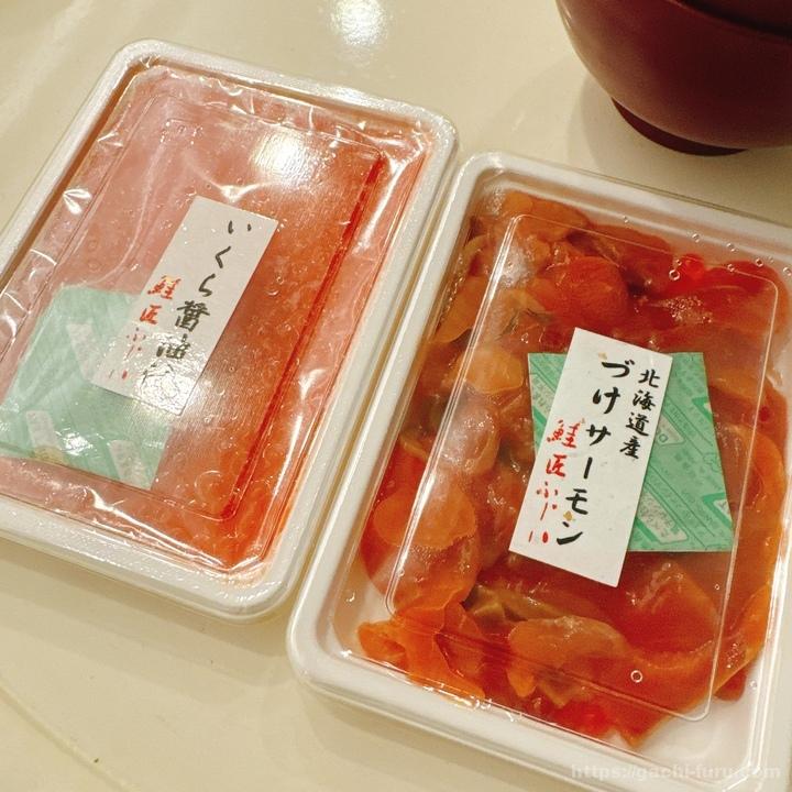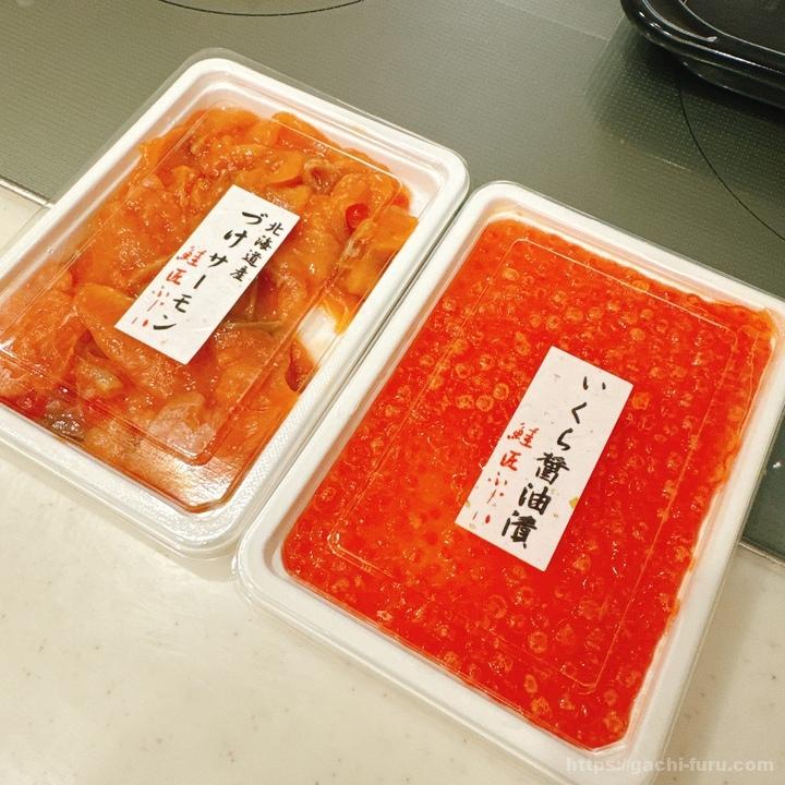 今回も、「いくら醤油漬け」と「づけサーモン」を1箱ずつ。