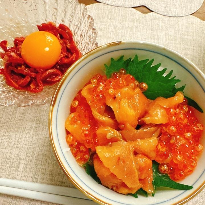 いつもと趣向を変えて、いくらと数の子のセットを頼んでみた。