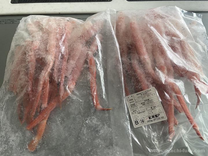 北海道根室市から「刺身用紅ズワイガニむき身400g×2P」が届いた。寄付額は15,000円であった。