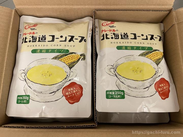 北海道由仁町から「クレードル 北海道濃縮コーンスープ」が届いた