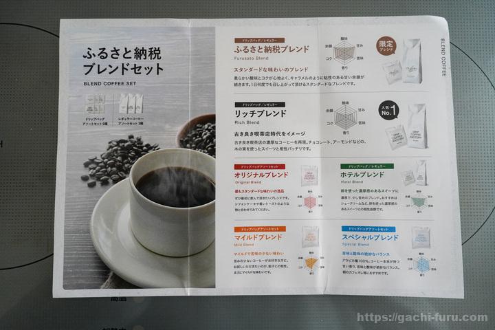 パンフレットはこちらである。各コーヒーのレーダーチャート付き。ふるさと納税ブレンド、酸味を抑えてあるので飲みやすいのかもしれない。