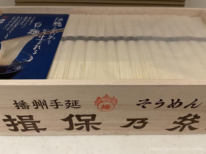 兵庫県太子町から「手延素麺揖保乃糸 特級60束入り」が届いた。