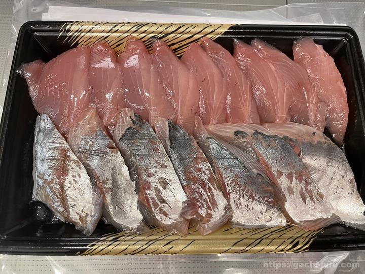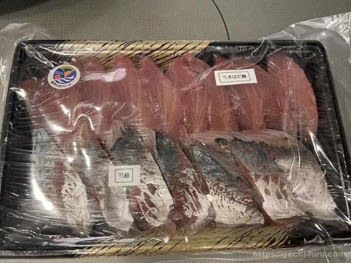 さて、2回目が届いたので報告である。2回目は、「きはだ鮪」と「鯵」の2種類のセットであった。