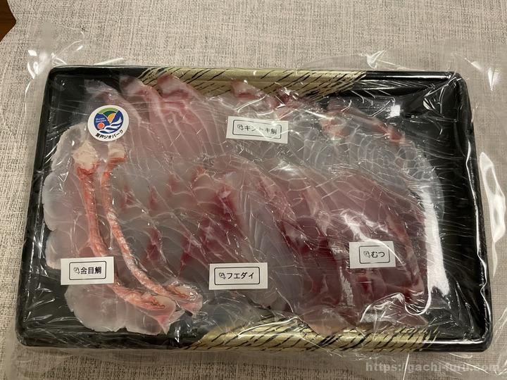 3回目も届いた。今回は「金目鯛」「フエダイ」「むつ」「キントキ鯛」の4種類。