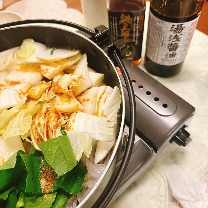 野菜を入れると水分が出るので「鍋」っぽくなってくる。もちろん、醤油も味醂もふるさと納税である。そういえば最近砂糖を頼んでいないな。黒砂糖もまた頼まないと。