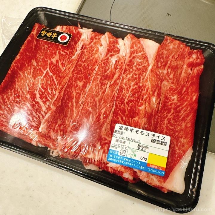 宮崎牛である。宮崎牛はこれまでにもいくつかふるさと納税で頼んでいるが、いわゆる「A5」のような脂肪の多い肉ではなく、赤身系の肉が多い印象であり、とても好感触である。過去にもすき焼きや焼肉を頼んでいる。