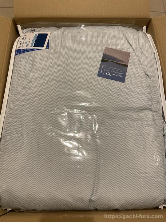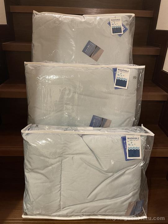 どちらかというと上の写真を見てもらった方がイメージが湧きやすいだろう。薄いブルーの掛け布団であるが、冬はガチの羽毛布団を使っているが、この時期になると暑くて使えない。しかし、明け方はまだまだ肌寒かったりするので、ちょうど良いものがないか探していたところ、ふるさと納税であったので頼んでみたというわけである。