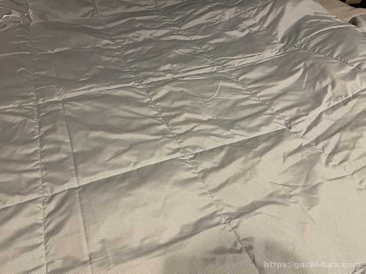 なお、肝心の寝心地であるが、これがまた、すっごく良い。かなり柔らかく薄手なので、全然邪魔ではないし、暑くもない。なのに、寒めの朝になると途端に保温効果を発揮。かなり優秀で使い勝手が良い。むしろ、真冬用と真夏用の両方の時期に食い込んで、1年の半分ぐらいこの掛け布団でいけるのではないか、というぐらい優秀。
