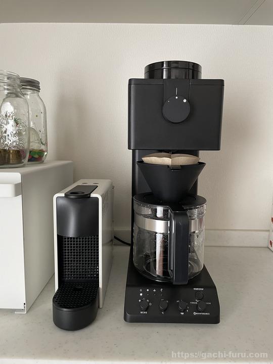 さて、置いてみた。ちなみに左にあるのがこれまで使っていたネスプレッソである。