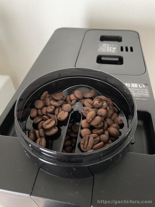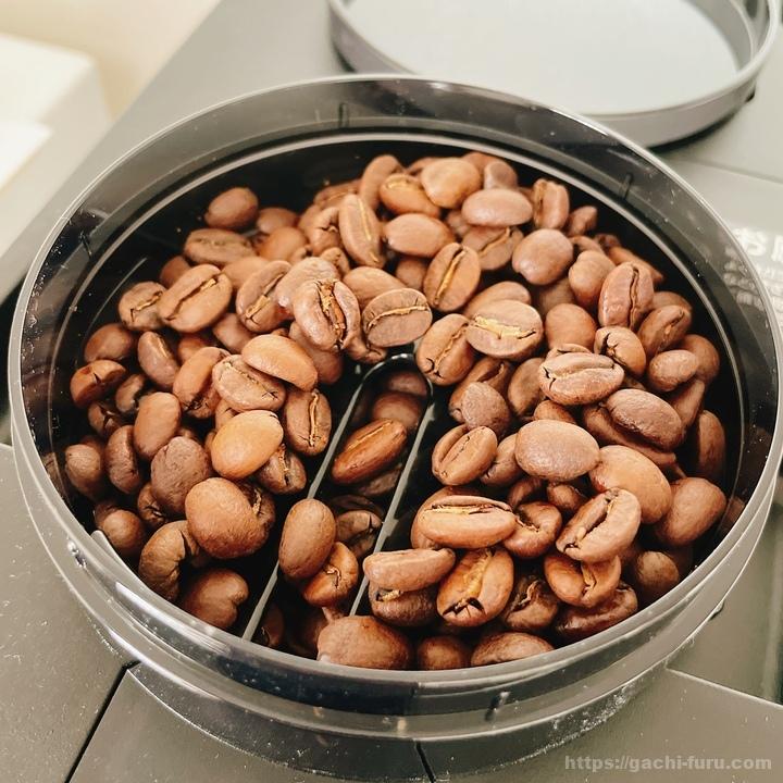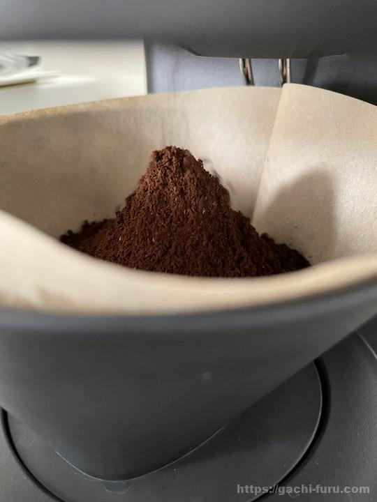 別の日に、6杯分でやってみたとき。ほぼ一番上まで豆が来る。
