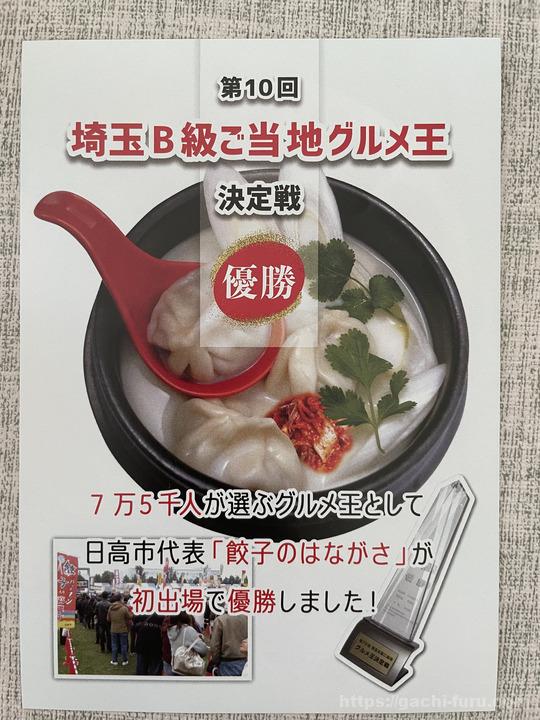 裏面にはB級グルメで優勝したというエピソード入り。優勝したのは水餃子?