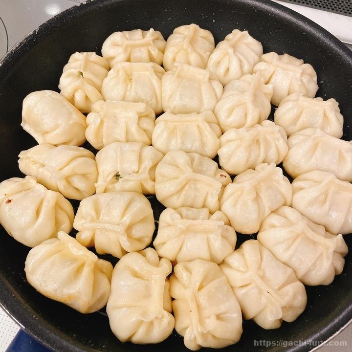 焼き方はけっこう変わっている。お湯を入れるのは良いのだが、途中からけっこうな量の油を投入し、揚げ焼きにしていくようである。水と油を混ぜることになるので、めちゃくちゃハネそう。
