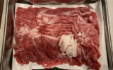 さて、実食。まずは冷蔵庫で解凍し、また食べる1時間ほど前に室温に出しておく。旨そう。しっかりサシが入っている。