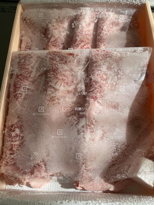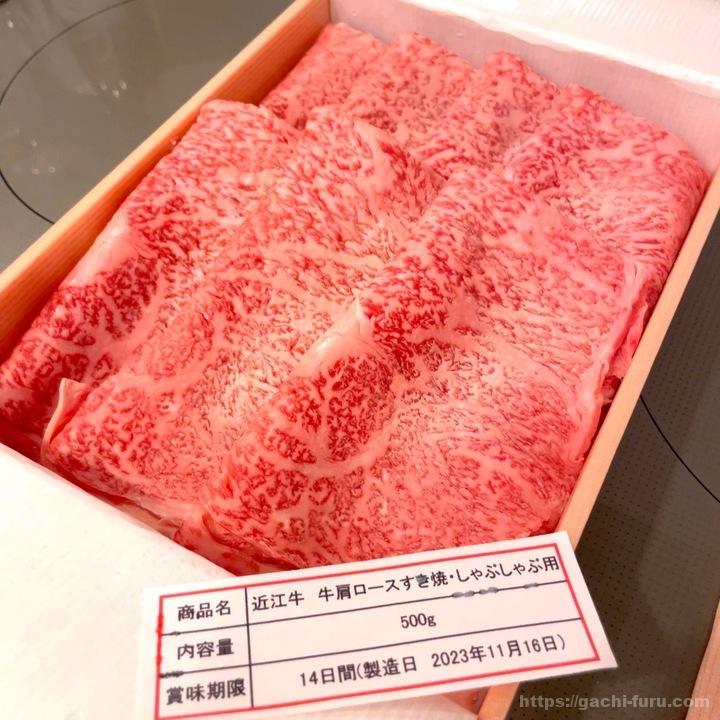 我が家はすき焼き大好物なので、すき焼き肉をよく頼む。いつも頼むのは殿堂入りリピート品の南さつま市の肉なのだが、たまには浮気して近隣の近江牛を、とのことで頼んでみた。頼んだのはこちらである↓