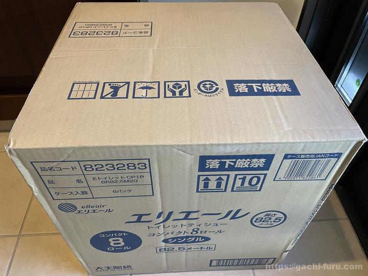 箱で届く。トイレットペーパーが64ロールも入っているだけあり、箱は結構大きい。