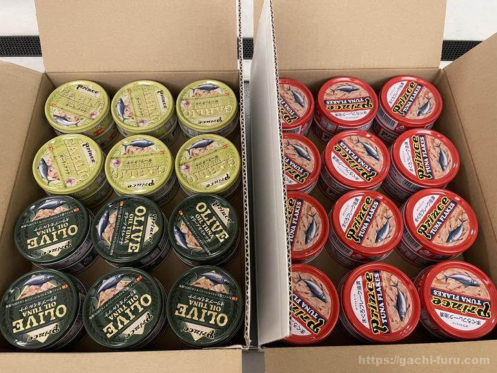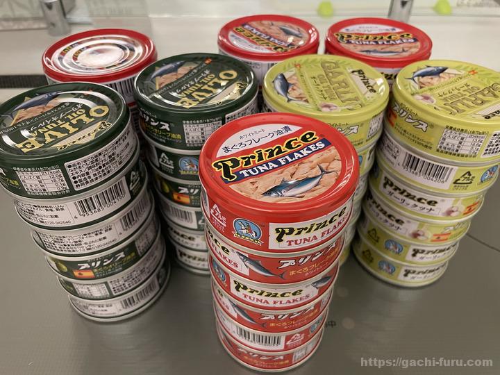 なお、いろいろなバリエーションがある。赤缶のみ、銀缶のみ、ミックス、などなど。「プリンスツナ缶」で検索してもあまり出てこないので「焼津市 赤缶」という検索がオススメである。