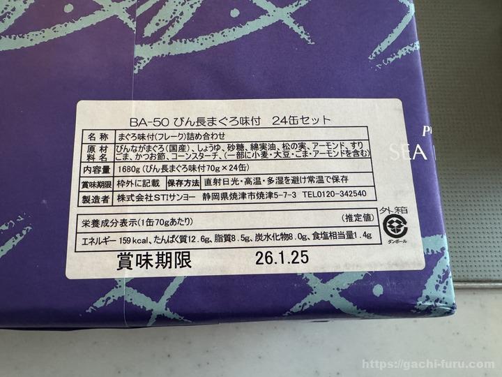 今回も「赤缶・オリーブオイル・ガーリックツナ48缶」で、寄付額は35,000円だったので変わりない。内容も変わりなかった。