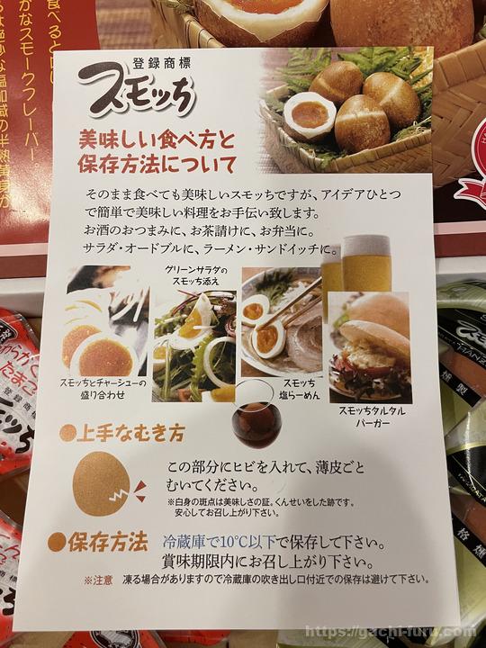 スモっちとは何か。ズバリ、スモークした半熟卵である。ふるさと納税サイトからの説明文によると: