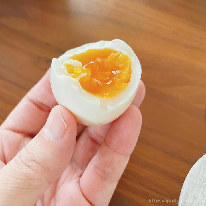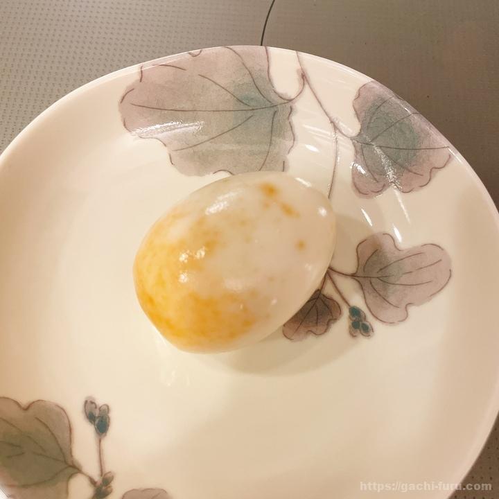 半分食べた。このように、普通の半熟塩ゆで卵である。