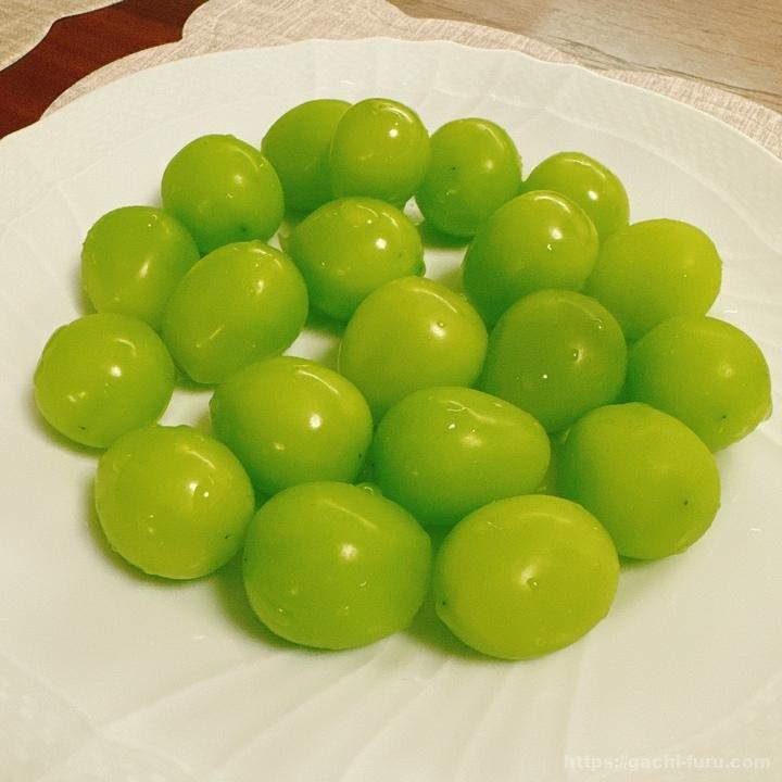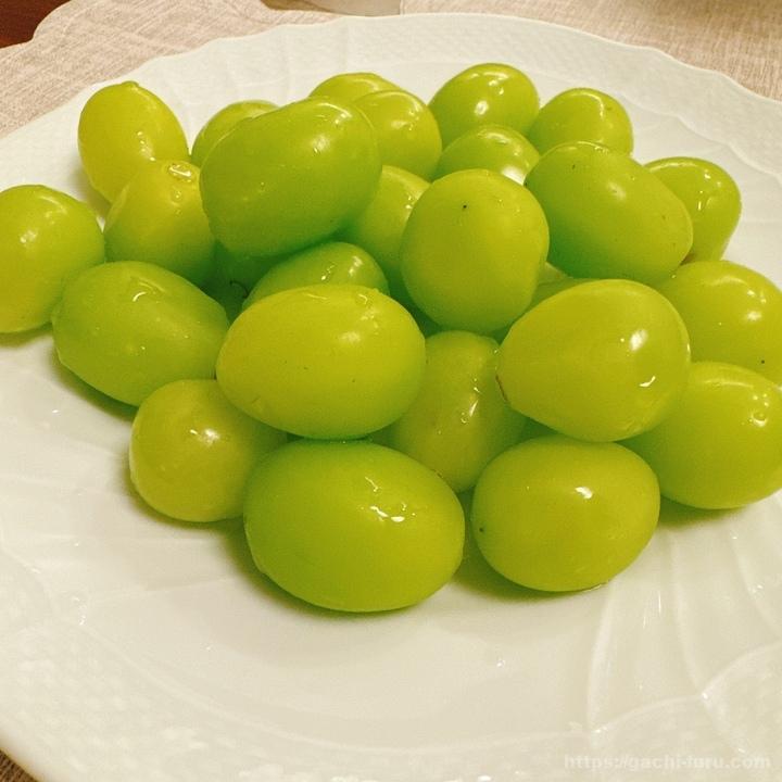 さて、届いたものはこちら。素晴らしくハリのある、ピチピチのシャインマスカットだった。