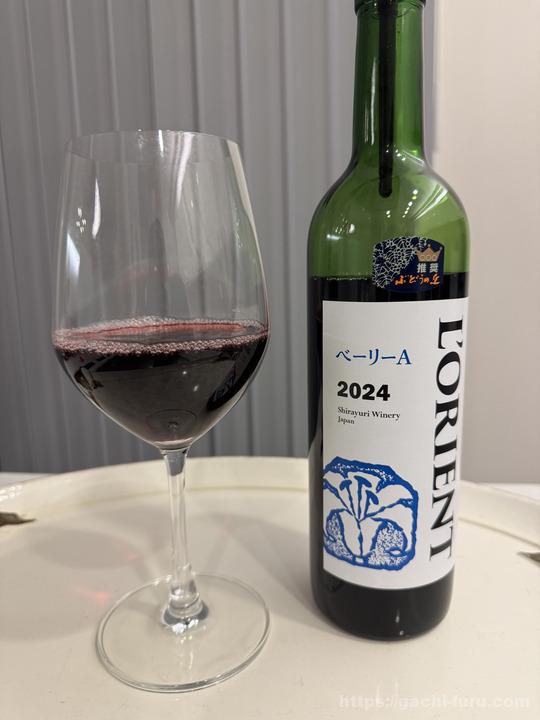 まず、べーリーAのほうは、確かに日本のマスカットべーリー、という味わいだが、意外に悪くない。普段飲んでいるフランスやイタリアのワインとは異なる。グラスはリーデルのボルドーグラスがちょうど良かった。