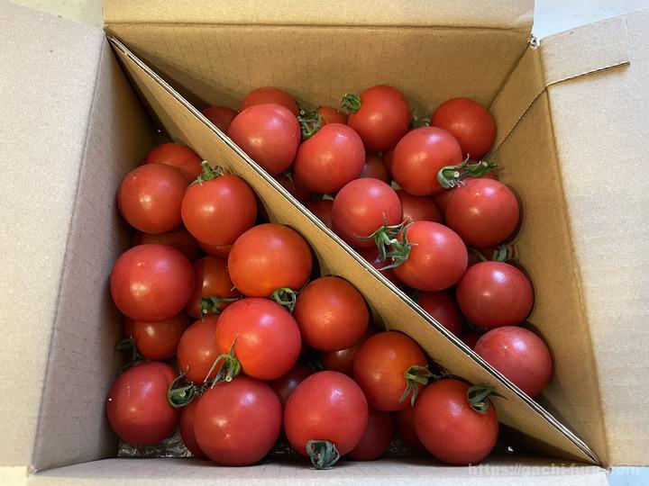 届いた。ミニトマトではあるが、かなり大きめのミニである。一口で食べるのは厳しそう。かといって、普通のトマトよりは小さいサイズである。