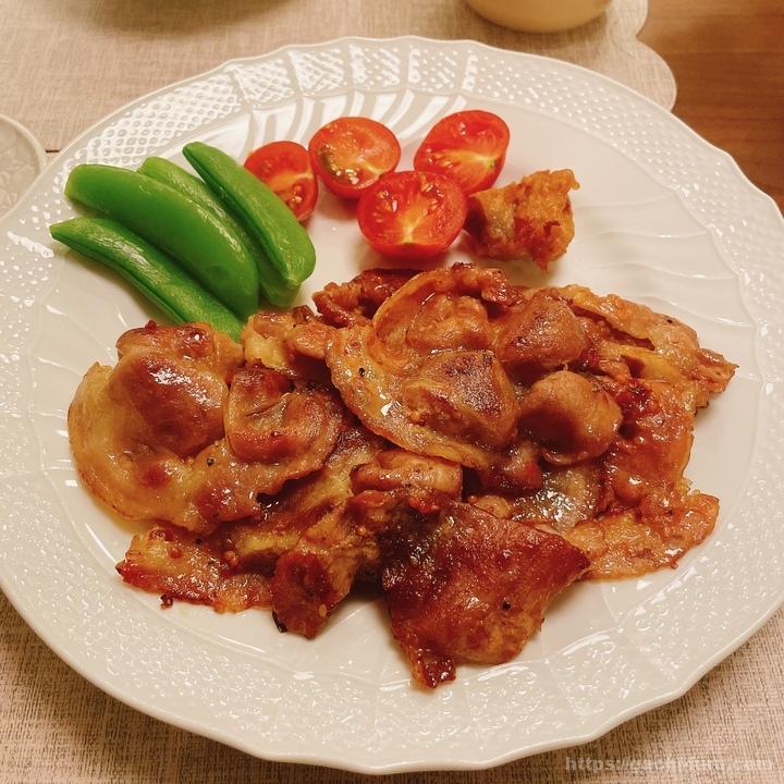 早速食べてみた。一口では食べきれないので、半分に切ってある。ちなみに豚肉の付け合わせにしているが、豚はおなじみ、旭川市である。